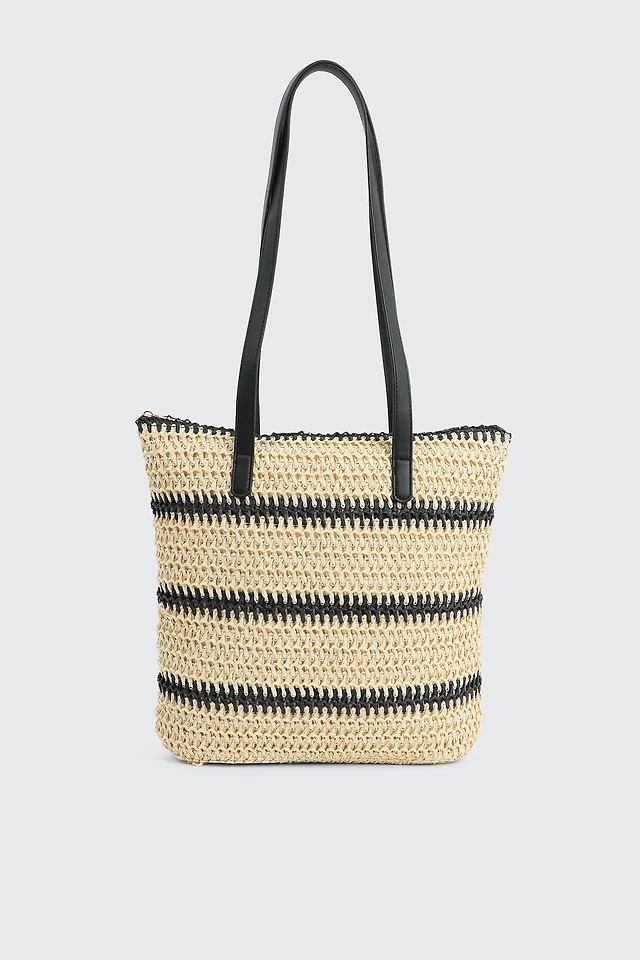 Ardene Colorblock Tote Bag with Scarf Detail in Black | 100% Recycled Polyester/Faux Leather | Eco-Conscious