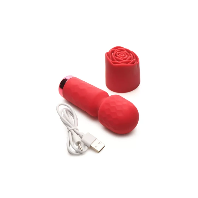 10-Function Pleasure Rose Rechargeable Mini Wand Massager
