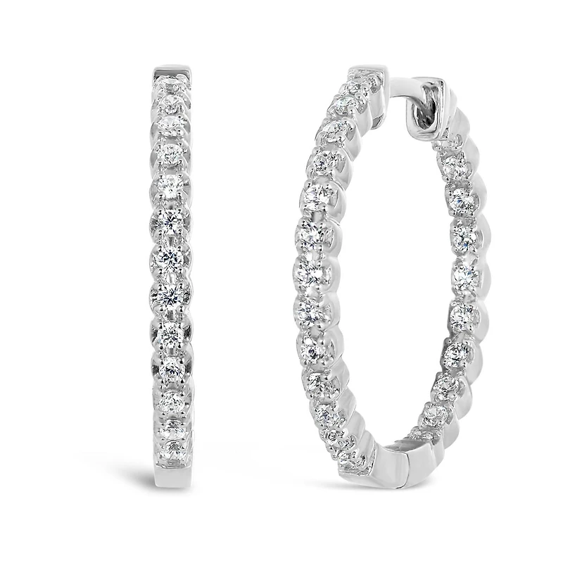 Sparkle from every angle with these inside out hoop earrings. Radiant with 0.50ctw of spectacular round diamonds, each earring is set with a row of diamonds along the front edge as well as a row of diamonds on the inside back edge. These beauties are polished to a brilliant luster and are secure with hinged click backs.