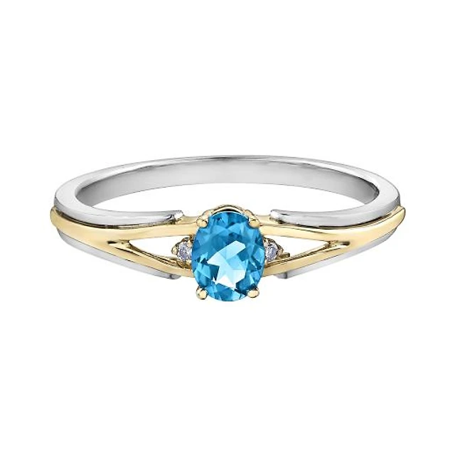 10K White & Yellow Gold Blue Topaz & 0.015CTW Diamond Ring