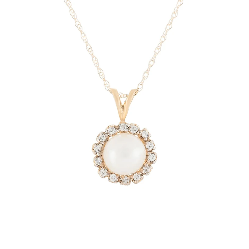 10K Yellow Gold 0.14CT Diamond & Fresh Water Pearl Pendant