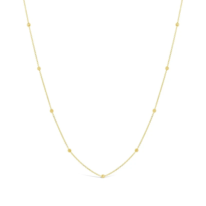 The chain features delicate diamond-cut beads that add a touch of sparkle, making it an essential piece in your jewellery collection, suitable for any occasion. The chain is designed to be worn at either 16 inches or extended to 18 inches, providing versatility in how you style and layer it to suit your preferences.