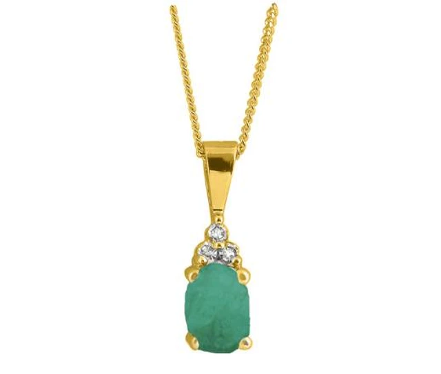 10K Yellow Gold Emerald & Diamond 18" Pendant