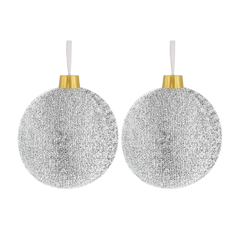 These 2 pack tinsel ornaments from Occasions will look great in your yard this Christmas. They are 12 inches in diameter and easy to inflate - they blow up like a balloon. They have insulated, weather-proof material so they don't deflate in the cold. Hang on trees or anywhere an ornament can be hung