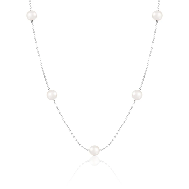 Refined and radiant, this 14K white gold cable tin-cup necklace features 7mm freshwater pearls spaced with elegant precision along a sleek, luminous chain. The cool tone of white gold enhances the soft iridescence of each pearl, creating a look that’s effortlessly sophisticated and endlessly versatile.