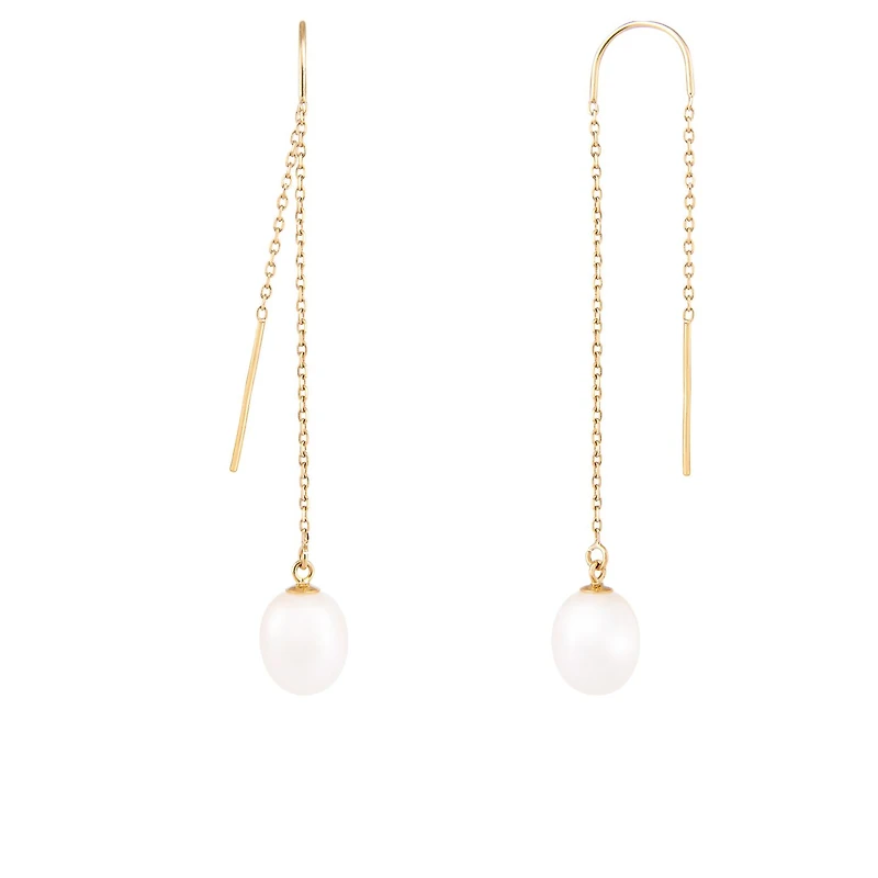 Exude timeless elegance with these 14K yellow gold earrings, each featuring a luminous 7.5-8mm white freshwater pearl. The warm glow of the gold perfectly complements the pearl's natural radiance, creating a harmonious balance of sophistication and charm.