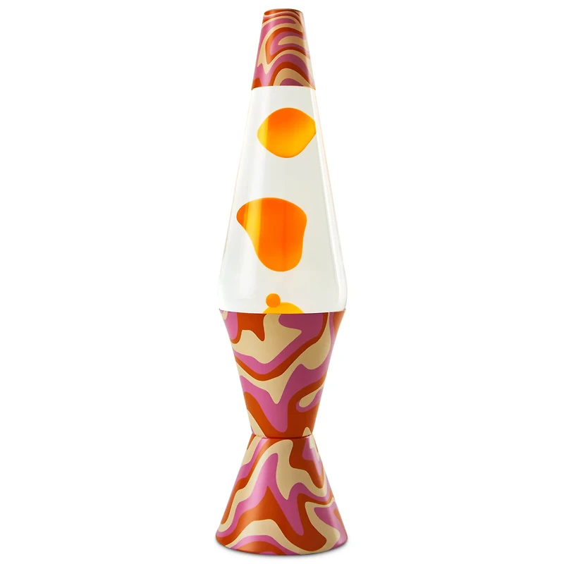 Born in the wrong generation? Us too. Throw it allll the way back to the free love era with this trippy '70s Retro Orange Swirl Lava Lamp. This 17 Inch lamp features an orange, pink, and beige outer design, with neon orange wax floating through clear liquid! Mid-century modern your way back to the '70s with this awesome lava lamp.