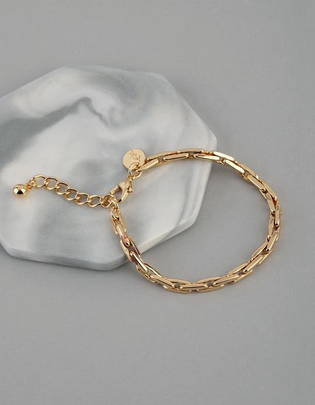 18ct Gold Plated Brass Rectangle Link Chain Bracelet