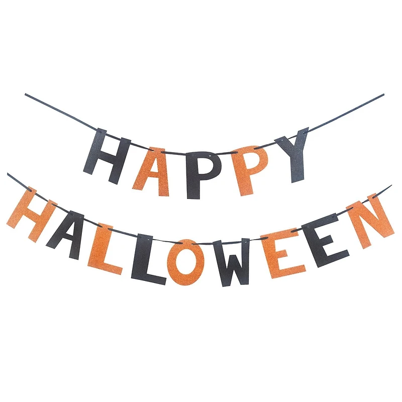 1.Size: 5 ft’, 2 pieces2.Design: “HAPPY HALLOWEEN” words3.Color: black and orange glitter4.Perfect for hanging in somewhere for decoration5.Seasonal and festive6.Material: Paper and PP7.Easy for set up8. Coordinate with other Way To Celebrate Halloween party favors and decorations