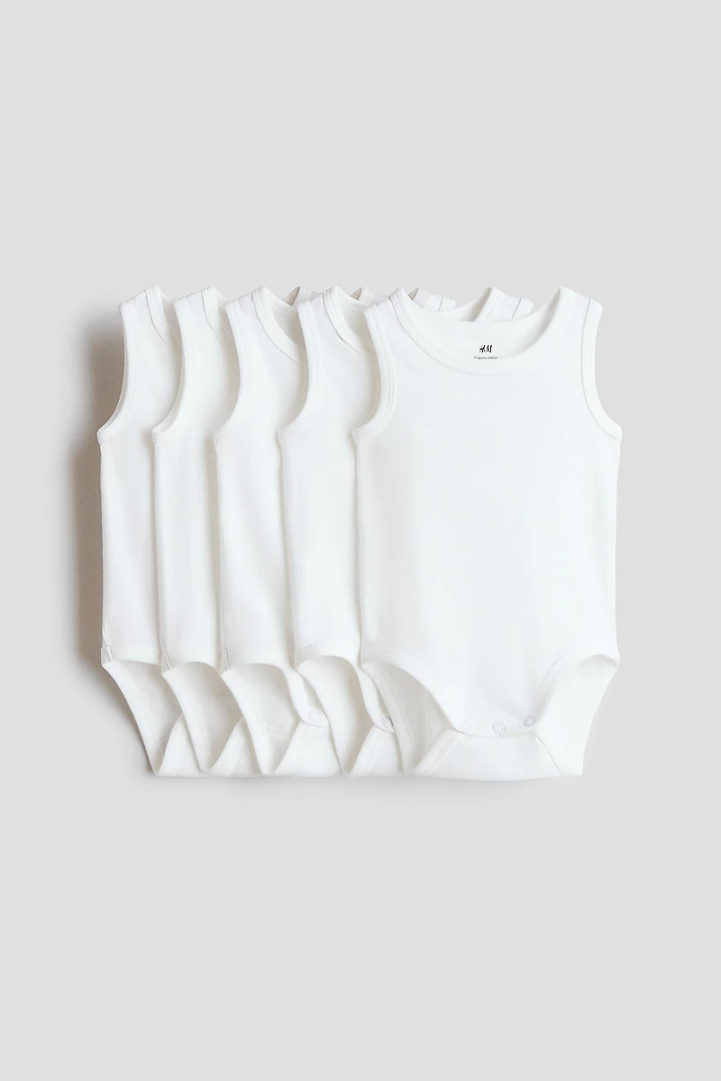 Sleeveless bodysuits in soft cotton jersey with snap fasteners at gusset.