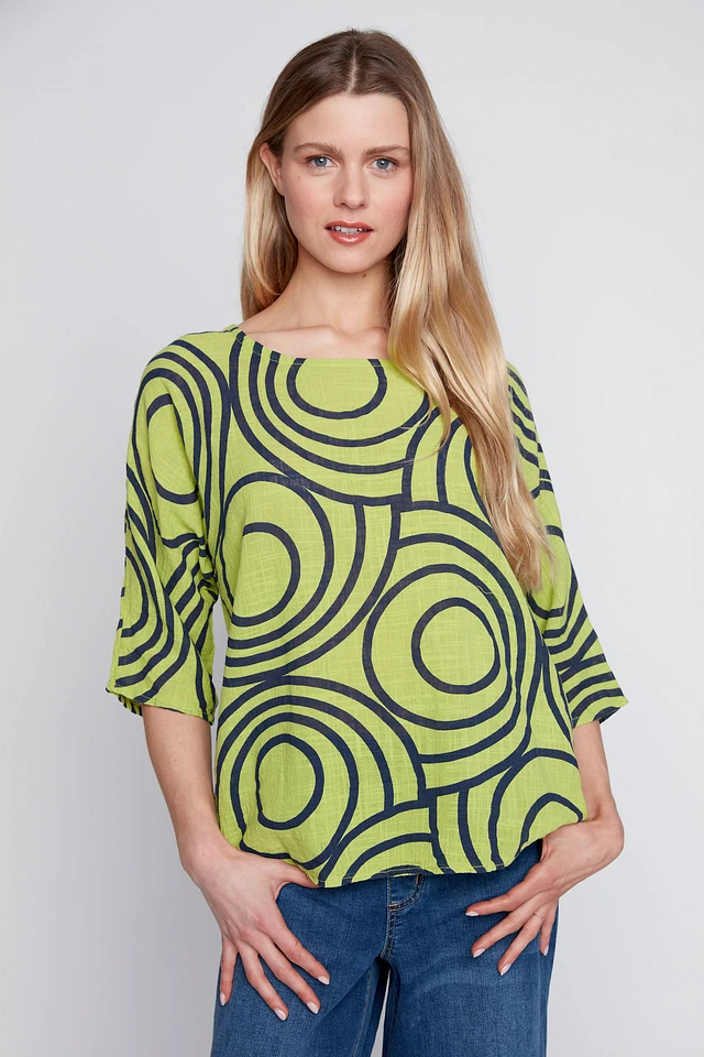 Abstract circles cotton gauze top