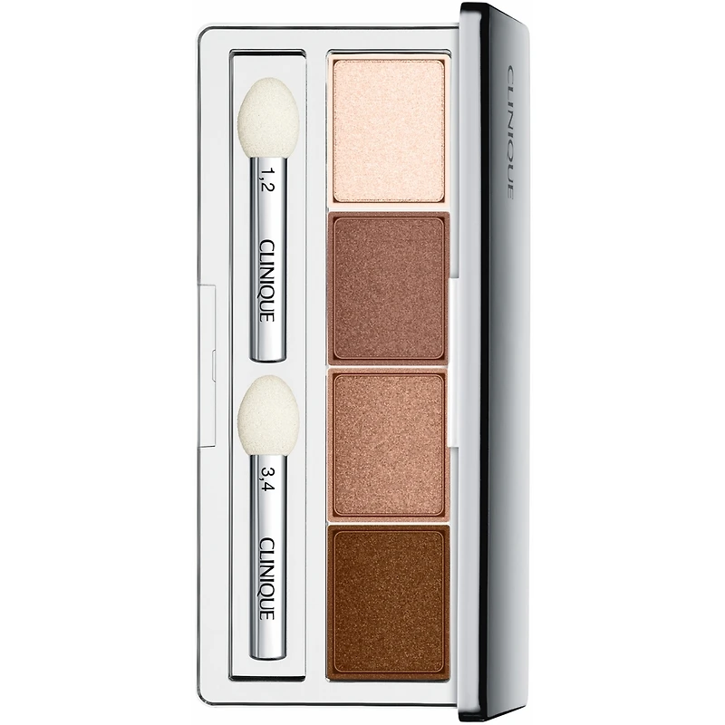- Use sponge-tip applicator to sweep an allover base shade across entire lid, lash line to brow. Create dimension with medium-toned shades. Layer and blend color into the crease and/or along lash lines. Deepest shade can be applied as a liner along lash lines using the applicator tip. For a more detailed application, choose specialists from Clinique's Makeup Brush Collection. Remove with your favorite Clinique makeup remover.