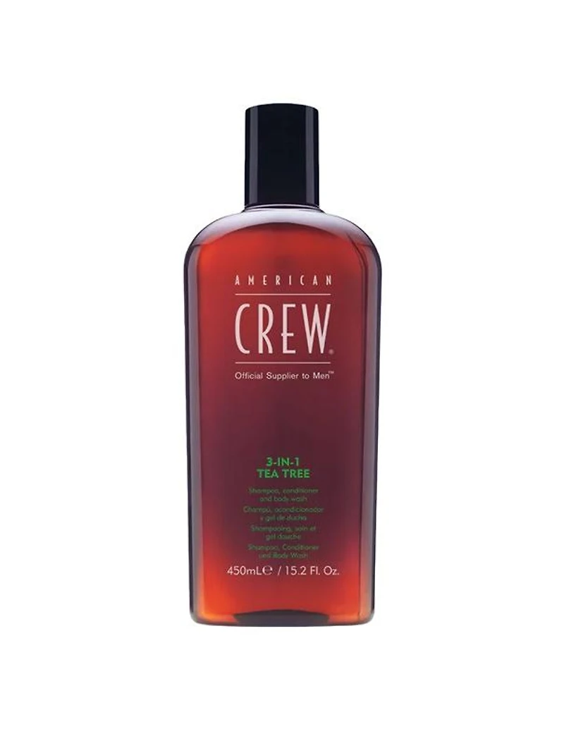 American Crew 3-in-1 Tea Tree - 450ml Shampoo, conditioner and body wash: 3-in-1 Tea Tree cleanses and conditions hair and skin leaving it feeling soft and with a refreshing scent. Benefits