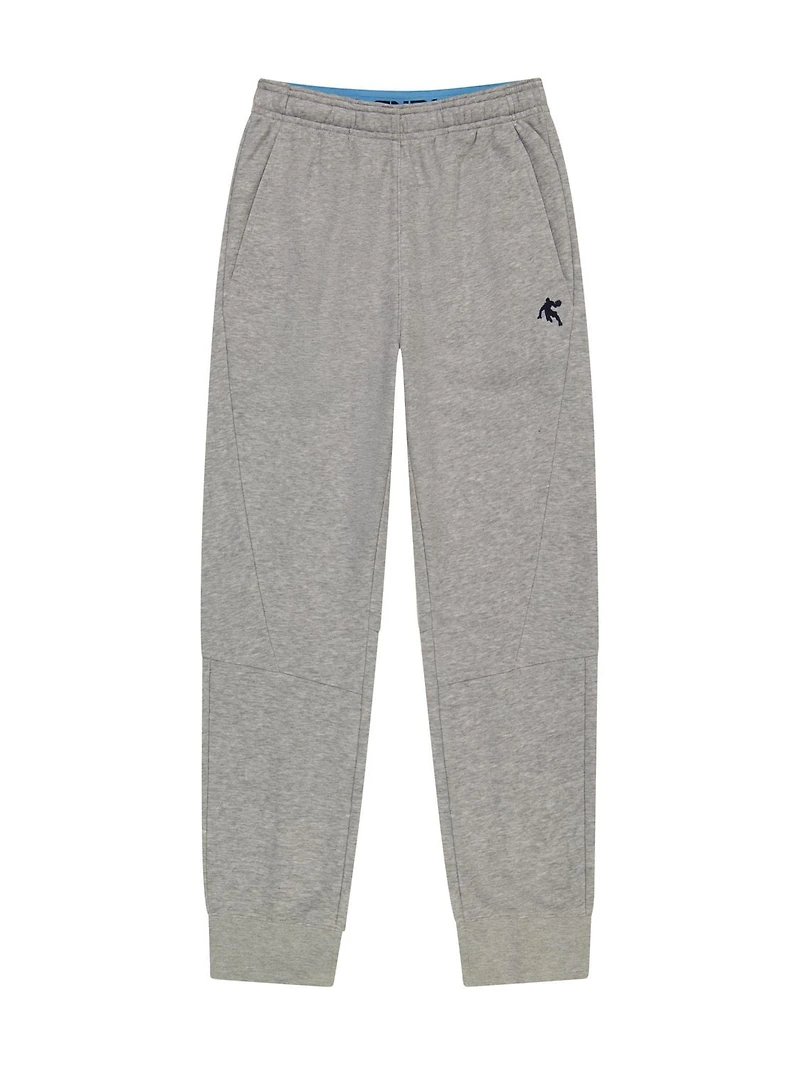 Dunk on the competition with the AND1 Boys Jogger pants. These Joggers are warm, durable, and super comfortable for any activity all day long. This is the perfect pant to show off your fresh new kicks. This jogger has two side pockets as well as a zippered pocket on the side, perfect for storing essentials on the go. The jogger is made of 60% Cotton / 40% Poly Core French Terry fabric making them warm, comfortable and breathable for those chilly days. It also features a branded inner waistband, drawcord, rib cuffs and our AND1 logo on the side. Match this jogger with our pullover hoodie for those stylish active days!