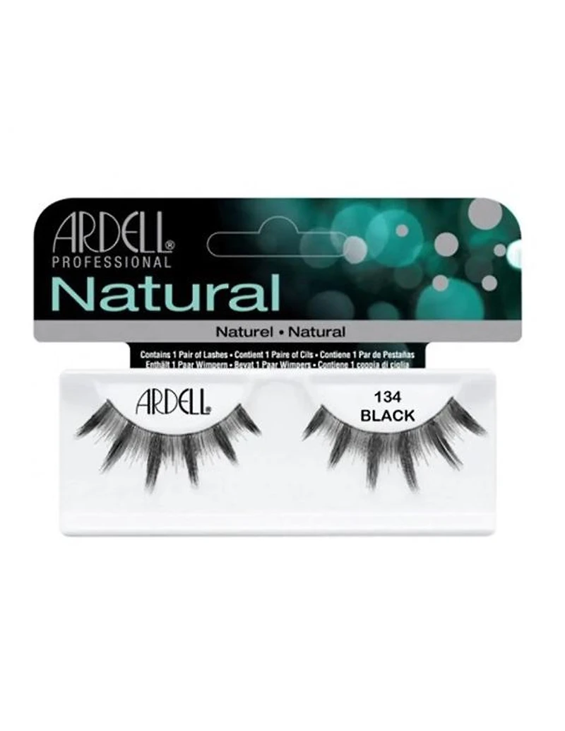 Ardell Invisibands Natural 134 Black A fashionable and feminine look that's a little different than the average natural lash! Ardell’s Natural 134 lash features a trendy crush-defying style. You’ll look uniquely sexy when you wear them. Keeps a natural bend and curl combined with a clear lash band to ensure lids stay comfortable even with long hours of wear. A popular choice for anyone looking for a more natural look that still packs a glam punch!