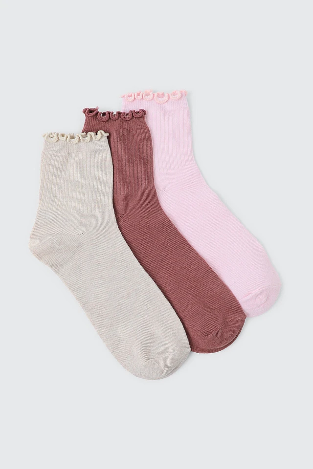 Ardene 3-Pack Ruffled Edge Demi Crew Socks in Light Pink | Polyester/Spandex