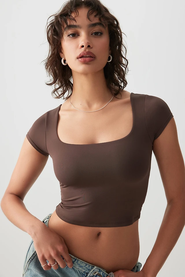 Ardene Contour Ultra Crop Square Neck T-Shirt in | Size | Elastane/Polyamide