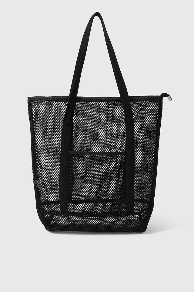 Ardene Large Striped Tote Bag in Black | 100% Recycled Polyester | Eco-Conscious