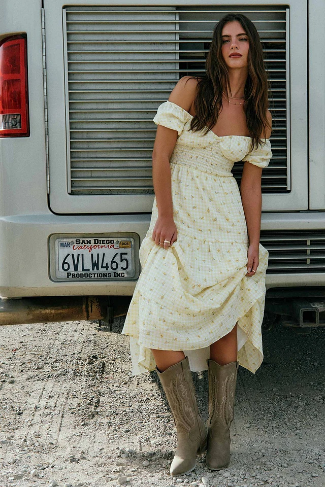 Ardene Midi Tiered Milkmaid Dress in Light Yellow | Size | Polyester/Elastane