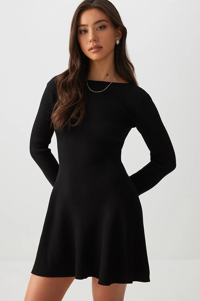 Ardene Mini Skater Dress in Black | Size Medium | Polyester/Rayon