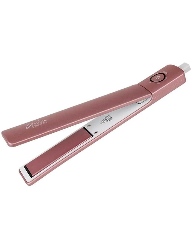 Aria Slim Hair Straightener Rose Gold This chic and versatile hair straightener effortlessly curls, straightens, and waves in a single pass, all while being compact enough to fit in your bag for styling on the go. Its ionic technology ensures instant softness and shine, perfect for all hair types and textures.