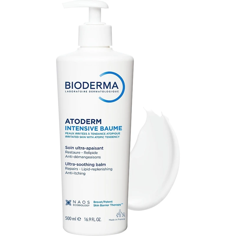 • Our balm can be applied once or twice a day, seven days a week, on freshly cleansed and dried skin, whether it be on your face or body. Ideal for the whole family, Atoderm Intensive Balm is suitable for babies, children and adults. It can even be used during pregnancy. If needed, it can also be combined with dermocorticoids.