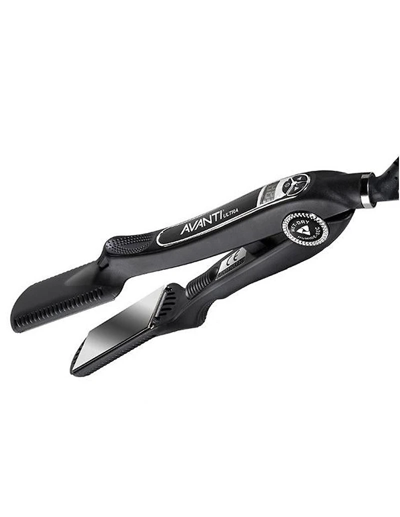 Avanti Ultra Nano Silver Ceramic Titanium Flat Iron Wet-to-Dry 1-3/8" Ventilating holes Wet-to-dry Nano-Titanium Nano-Silver Nano-Ceramic 1 3/8" floating plates 450°F (230°C) Digital temperature control system Dual Voltage Surround heat Auto shut-off after 60 minutes of inactivity WD-AVCROCC