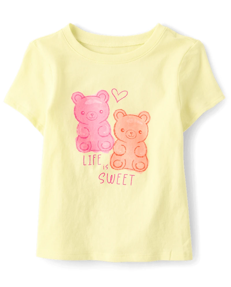 Baby And Toddler Girls Candy Bear Graphic Tee
