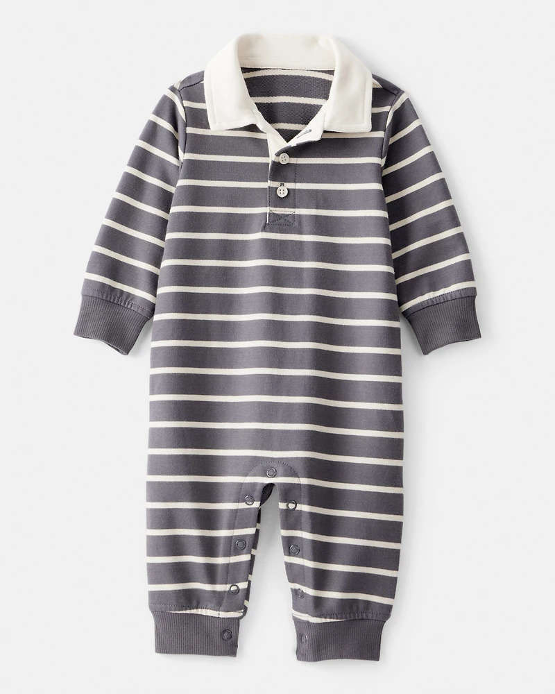 Baby Boy Striped Cotton Long-Sleeve Polo Jumpsuit - Grey/Ivory