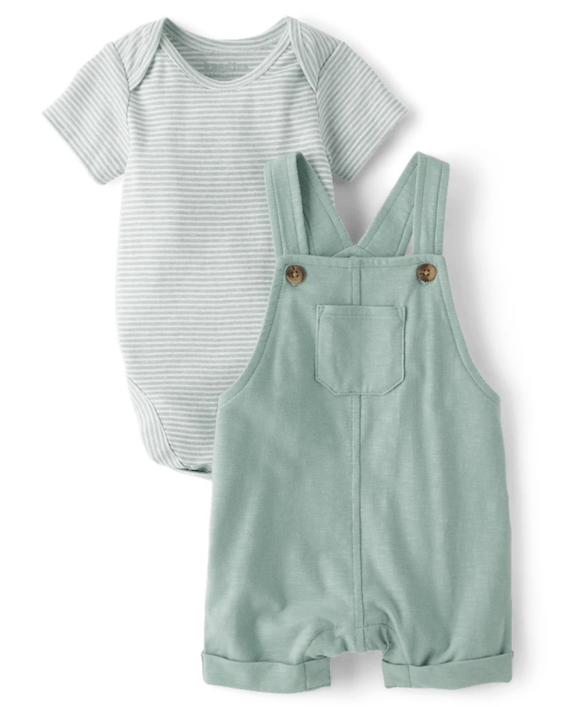 Baby Boys Marled Overalls 2-Piece Outfit Set