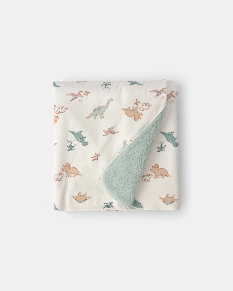 Baby Dinosaur Plush Blanket - Green/Ivory