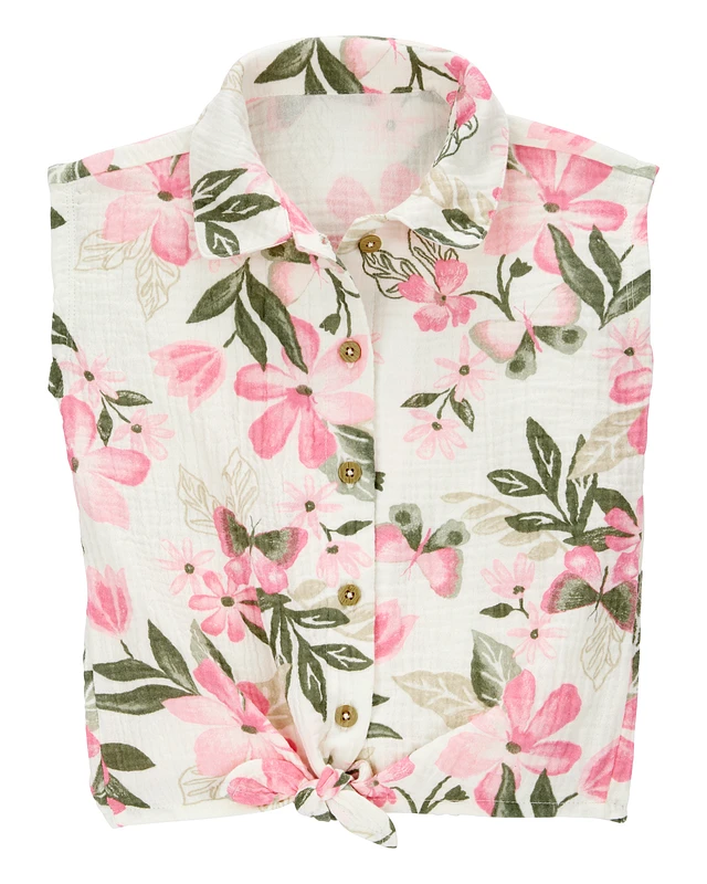 Sleeveless Cowl Neck Top in Ivory/Black Floral