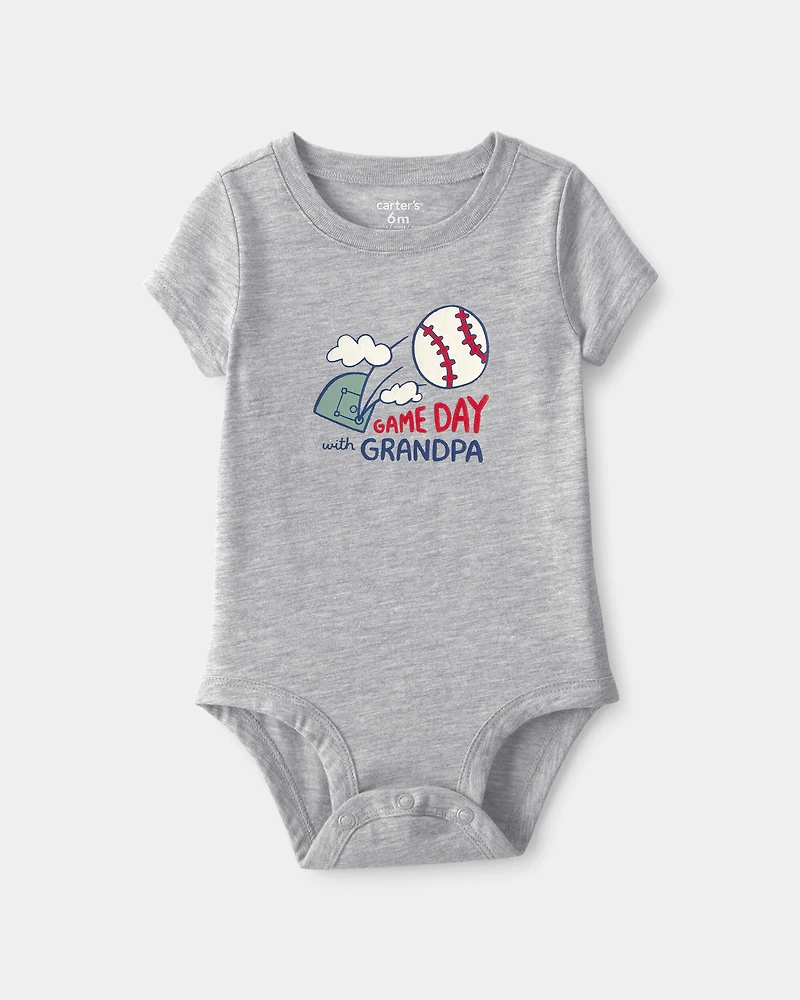 Baby 'Gameday With Grandpa' Graphic Bodysuit - Grey