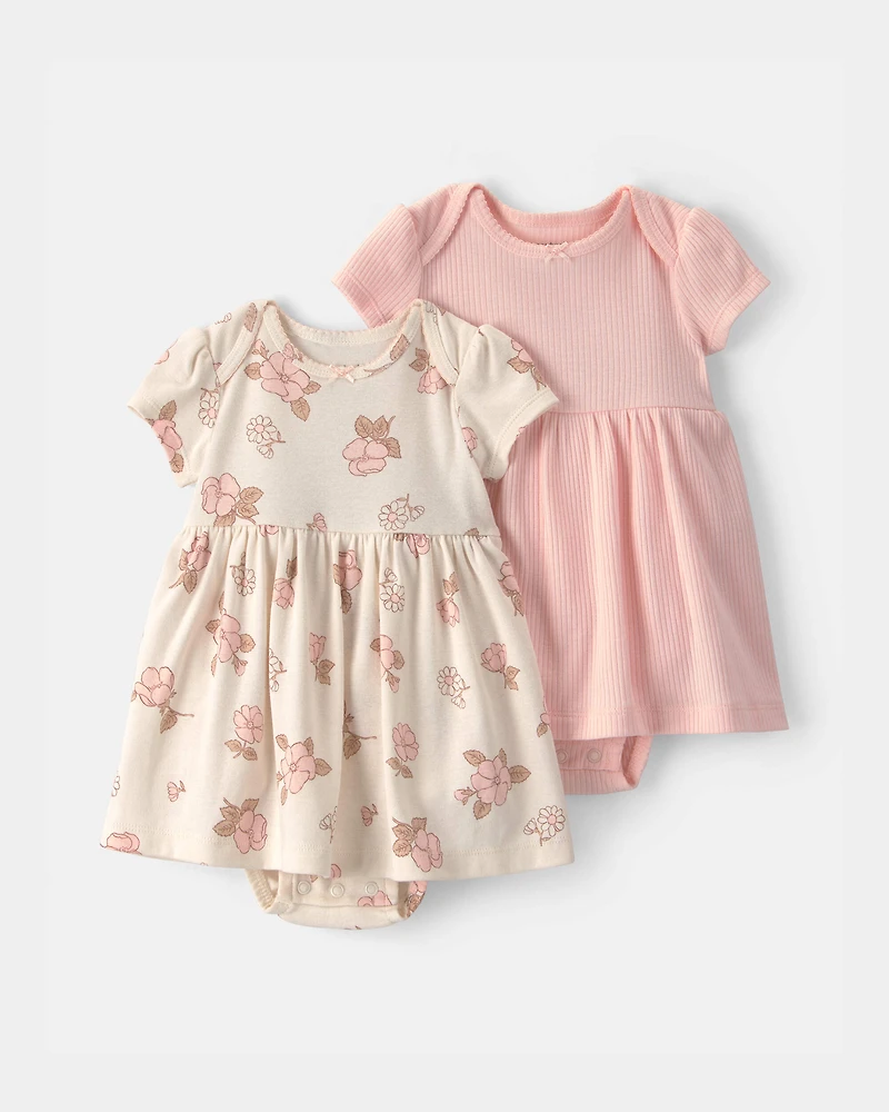 Baby Girl 2-Pack Floral Short-Sleeve Bodysuit Dress - Pink/Ivory