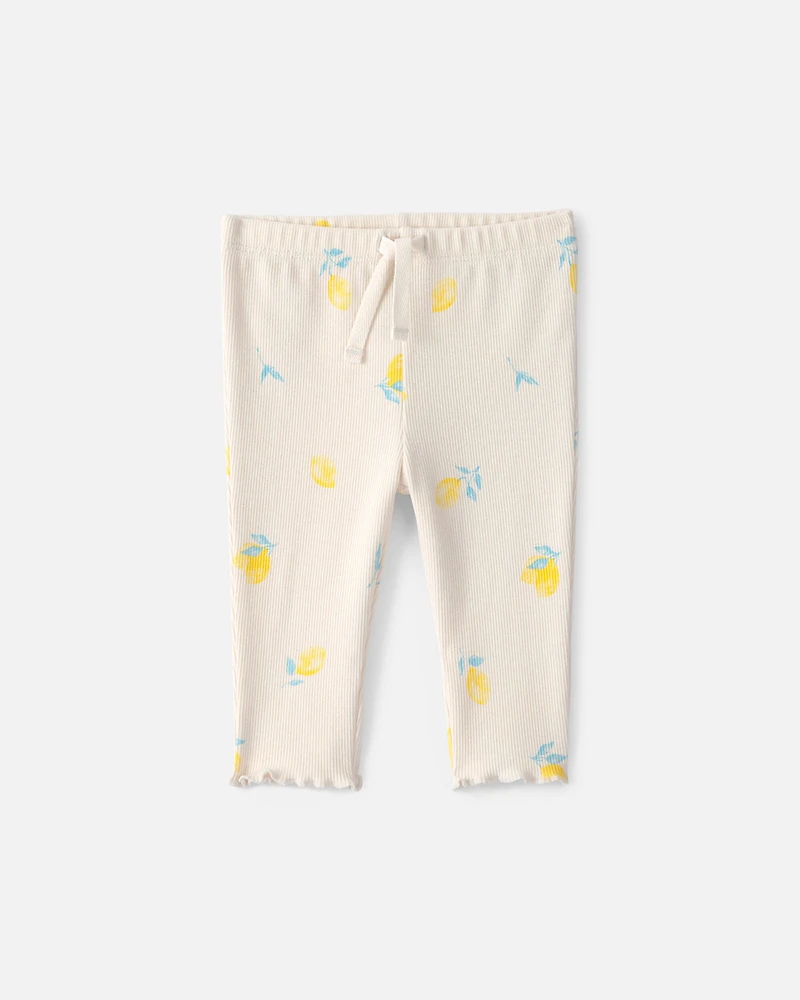 Brighten up your little one's wardrobe with these charming ivory lemon print leggings. Made from soft 2x2 rib fabric, they ensure all-day comfort while letting your baby explore with ease. The pull-on style means no fuss during dressing, so you can get out the door faster. Plus, the non-functional drawstring adds a touch of playful detail without compromising practicality. Perfect for casual outings, these leggings pair beautifully with any top. Parents love the durability and style, making them a go-to choice for everyday adventures. Trust in quality that keeps your baby comfy and cute.
