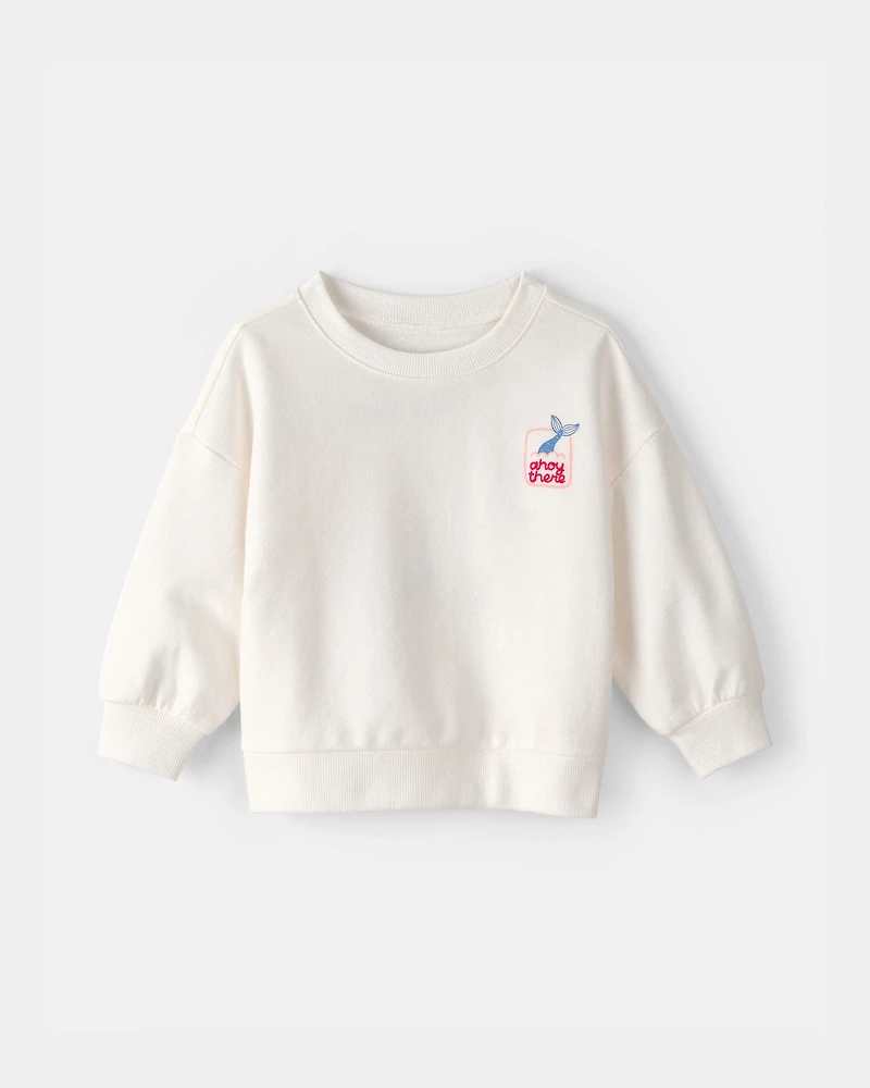 Baby Girl Mermaid French Terry Pullover Sweatshirt - Ivory