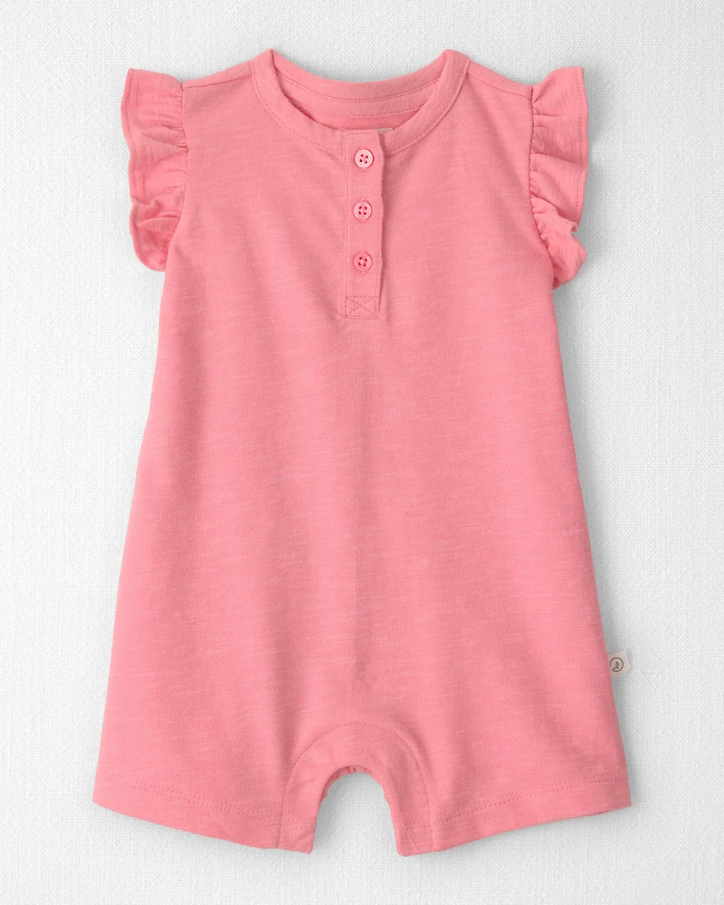Embrace comfort and style with this delightful romper, designed for little ones on the go. Made from soft, GOTS-certified fabric, it features short sleeves for breathability and charming flutter sleeves that add a touch of elegance. The easy snap button closure ensures quick changes, while the comfortable fit allows for all-day wear. Perfect for seasonal adventures, this piece seamlessly transitions from playtime to nap time, making it an essential addition to your little one's wardrobe. With its gentle pink hue, it brings a soothing warmth to any outfit, embodying the essence of thoughtful design and sustainability.
