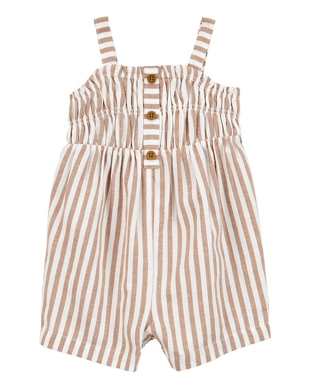 Baby Girl Floral Short-Sleeve Romper - Tan