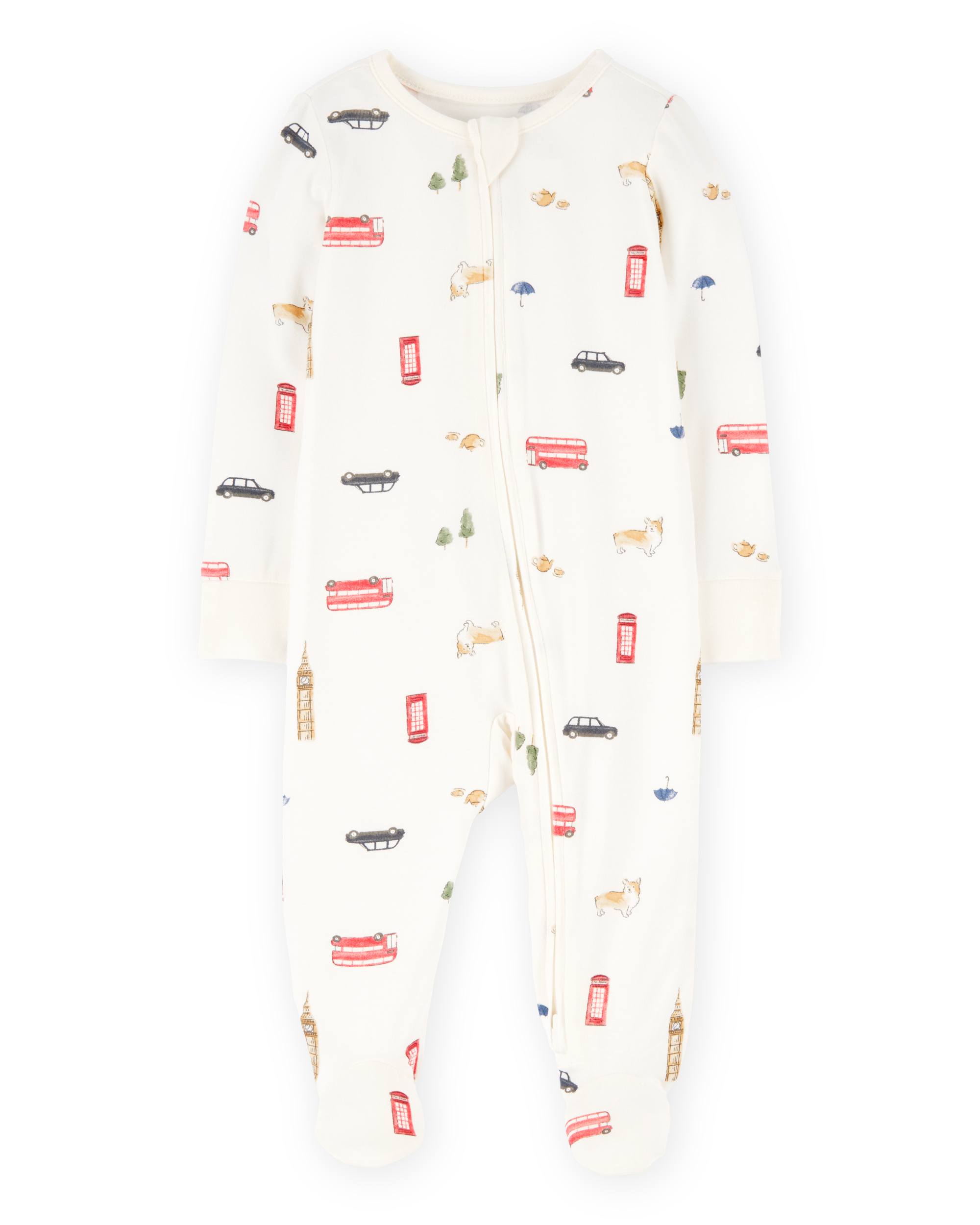 Baby London Print 2-Way Zip PurelySoft Sleeper Pyjamas - Ivory
