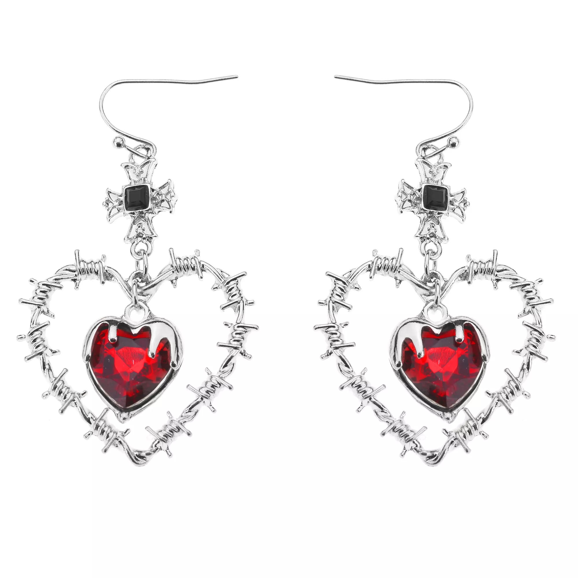 Barbed Wire Heart and Cross Dangle Earrings