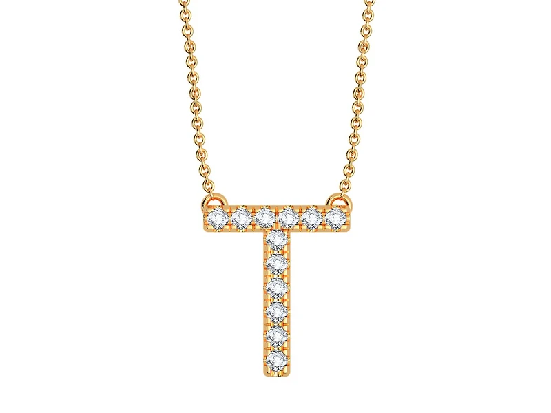 A brilliant expression of individuality, this Bella Moda necklace features the letter "T" crafted in 10K yellow gold and adorned with radiant diamonds. A refined and meaningful piece that adds a personal touch of elegance to any look.