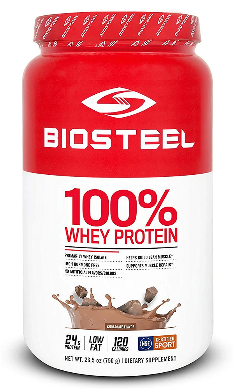 DescriptionBIOSTEEL - Natural 100%Whey Protein Blend Choc - 750 Grams - NPN: 00000000 -- Perfect For Delivering Essential Proteins To Your Body After A Workout, BiosteelS Whey Protein Blend Provides A Blend Of Three High Quality Protein Sources That Are Easily Absorbed And Digested By The Body With Optimum Nutritional Benefits Natural, Non-Gmo Ingredients Premium Blend Of 3 Proteins: Whey Protein Isolate, Whey Protein Concentrate, And Whey Protein Hydrolysate No Gluten, Soy, Antibiotics, Or Hormones Sugar Free - Sweetened With Stevia Assists In Muscle Development And DigestionPERFECT FOR DELIVERING ESSENTIAL PROTEINS TO YOUR BODY AFTER A WORKOUT, BIOSTEELS WHEY PROTEIN BLEND PROVIDES A BLEND OF THREE HIGH QUALITY PROTEIN SOURCES THAT ARE EASILY ABSORBED AND DIGESTED BY THE BODY WITH OPTIMUM NUTRITIONAL BENEFITSINGREDIENTSAMOUNT PER SERVING % DAILY VALUE Calories 110 Fat 1 g 2% Saturated 0.5 3% (+) Trans 0 g Cholesterol 30 mg Sodium 90 mg 3% Potassium 190 mg 6% Carbohydrate 3 g 1% Fibre 1 g 2% Sugars 1 g Protein 24 g Calcium 110 mg 10% Iron 1 mg 4% Amino Acids Profile per serving L-Alanine 1227 mg, L-Arginine 548 mg, L-Aspartic Acid 2583 mg, L-Glutamic Acid 3787 mg, L-Glycine 432 mg, L-Histidine 312 mg, L-Isoleucine 1494 mg, L-Leucine 2364 mg, L-Lysine 2134 mg, L-Methionine 509 mg, L-Phenylalanine 682 mg, L-Proline 1468 mg, L-Serine 1182 mg, L-Threonine 1758 mg, L-Tryptophan 284 mg, L-Tyrosine 613 mg, L-Valine 1354 mg NON-MEDICINAL INGREDIENTS Chocolate: Cocoa Powder, Natural Flavour, Guar Gum, Salt, Stevia, Lecithin (Emulsifier).