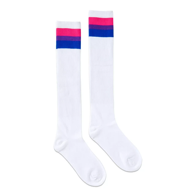 Ardene Striped Knee High Socks in White | Polyester/Spandex