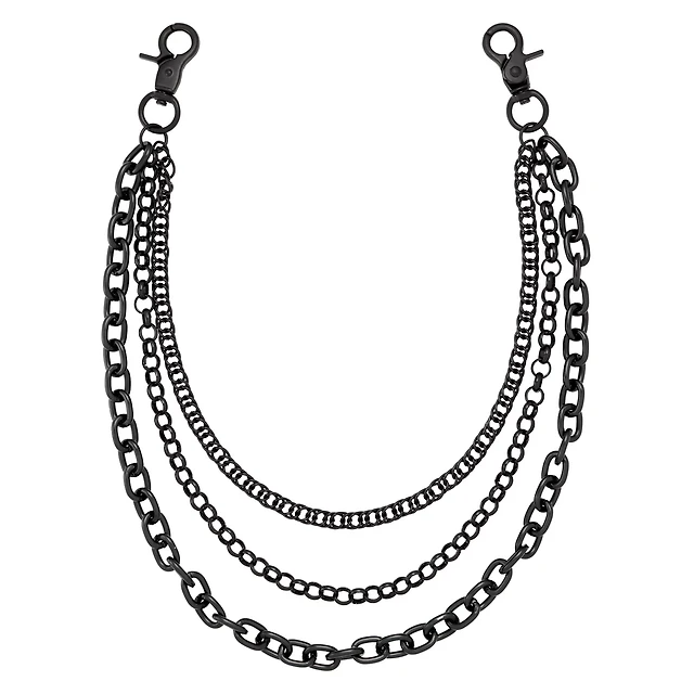 3 Row Black and Silver-Tone Spike Wallet Chain