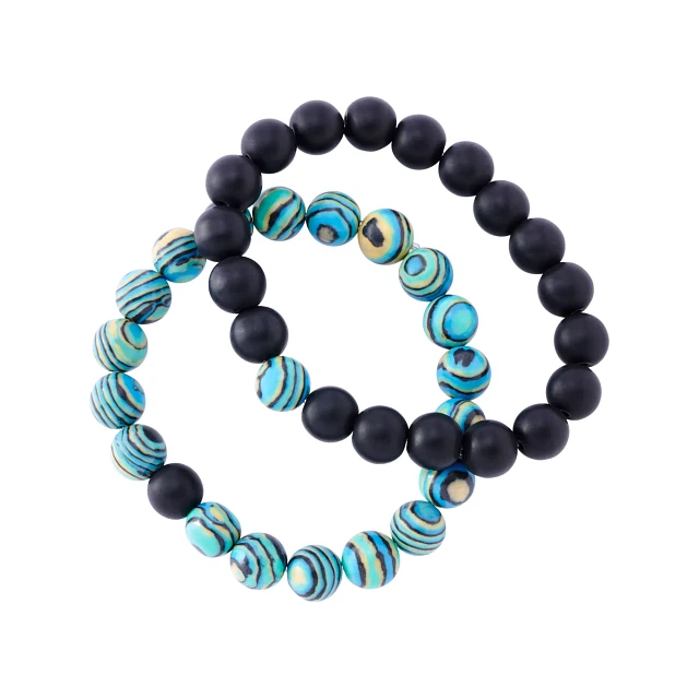 Black and Green Marble Long Distance Bracelets – 2 Pack