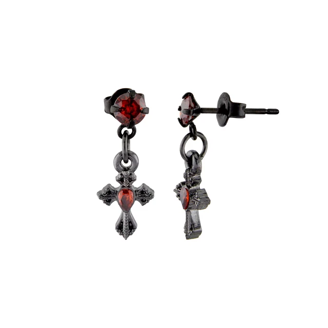 CZ Black and Red Spike Drop Cross Dangle Earrings