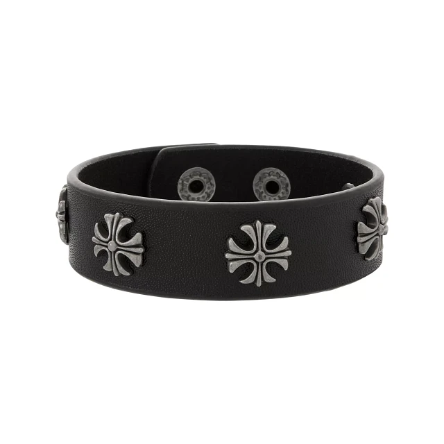Black Cross and Spike Faux Leather Cuff Bracelet