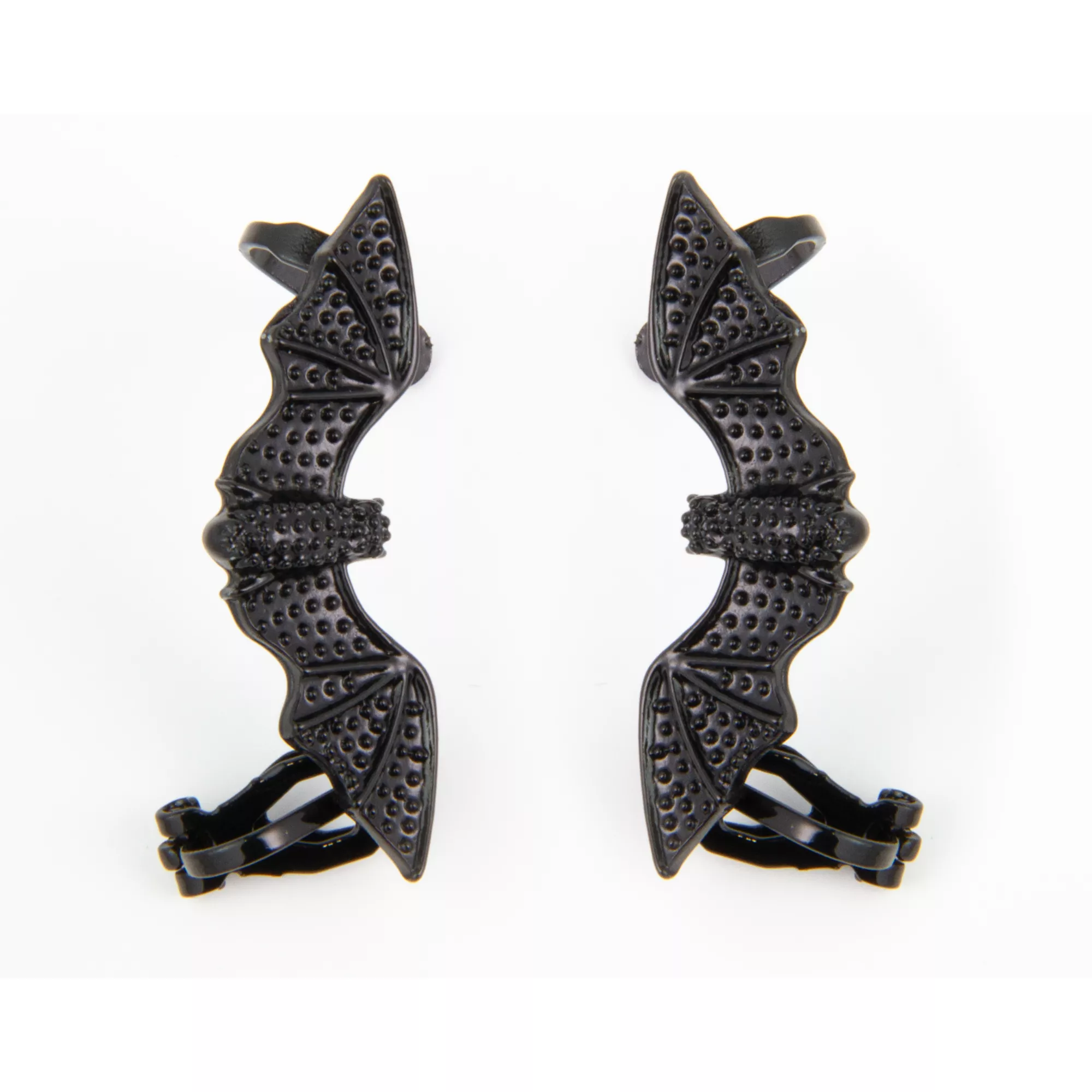 Black Bedazzled Bat Clip-On Ear Cuffs