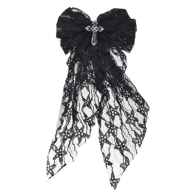 Black Fabric Organza Diamante Cup Chain Hair Bow Clip