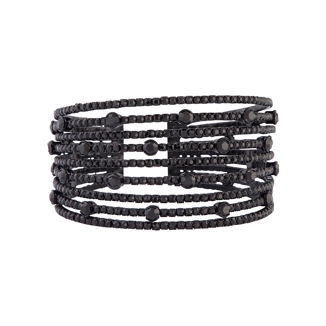 18ct Gold Plated Brass Cubic Zirconia Multi Row Cuff Bracelet